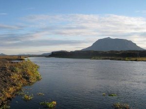 Á vatninu voru nokkrar endur, flestar með ótrúlega smáa unga. Skyldi varp hafa misfarist í vor? Svo sáum við fallega álftafjölskyldu – par með þrjá stálpaða unga. Við gengum að ármótum Jökulár og Kreppu til að ná örugglega upp matarlyst og gekk á með gamansögum. Á heimleiðinni gróf Ingvar upp hvannarót og gaf okkur að smakka. Hún líktist sellerírót. Það var viðeigandi lystauki fyrir grillið um kvöldið og þóttust margir hressast allverulega.