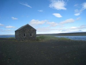 Svo skoðuðum við Sæluhúsið við Jökulsá, eitt af örfáum húsum á Íslandi hlaðið úr höggnum steini.