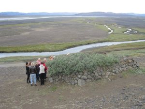 Hópurinn gisti í Þorsteinsskála sem er ljómandi þægilegur og um kvöldið las Ingvar Teitsson fyrir okkur sögur af Fjalla-Bensa þar til frakkarnir ráku okkur í háttinn.